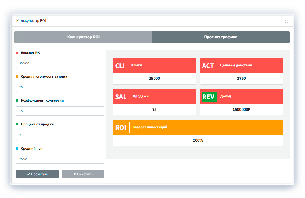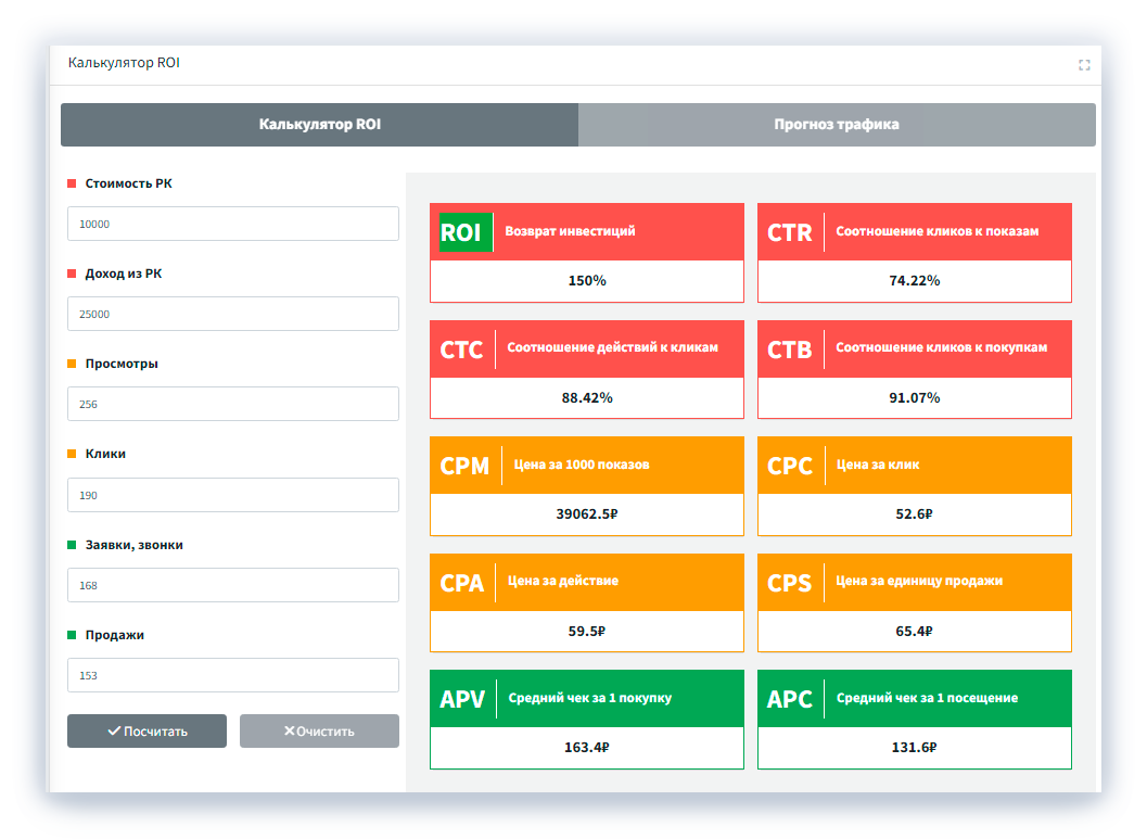 Таким образом, не стоит тратить время на ручные подсчеты. Наш калькулятор ROI – это оптимальный способ узнать все требуемые для развития бизнеса параметры за пару кликов по экрану. И результатами будет не один показатель в процентах, а полноценный анализ рекламной кампании, на основании которого вносить коррективы окажется проще.