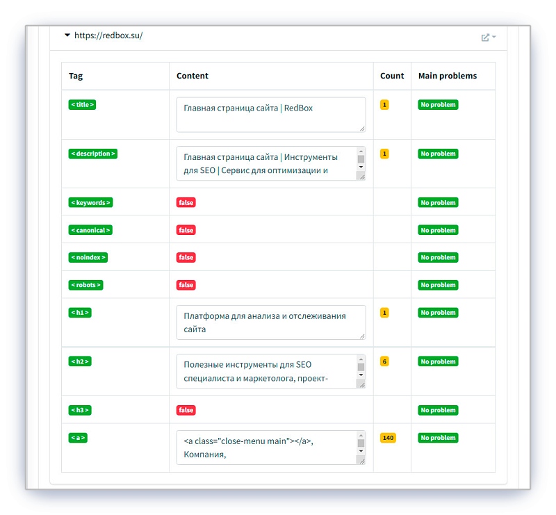 Meta tag monitoring дополнит информацию из Google Analytics, Search Console, Page Speed Inights, Яндекс Метрика, Вебмастер и пр., и позволит сделать базовую оптимизацию страниц.